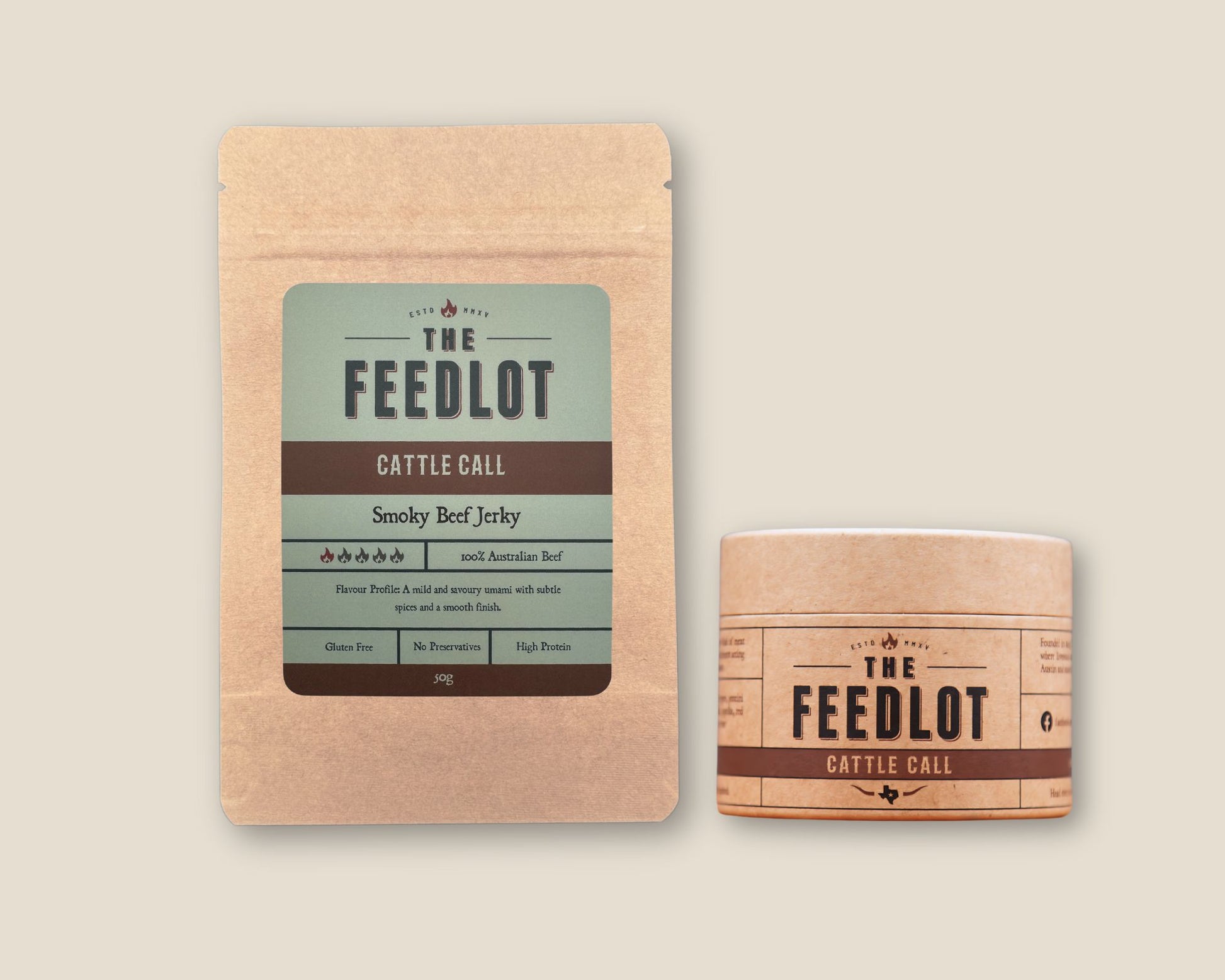 The Feedlot has teamed up with the legends at Killa Jerky to combine the best of both worlds. This smoky beef jerky is powered by Cattle Call providing an umami blast with a sweet and savoury flavour on the back end. Gluten free and all natural. Get both the rub and the jerky in this duo pack!