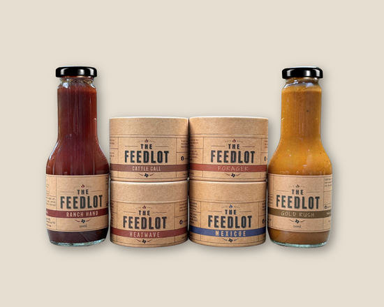 If pork is your preference, our Pork Bundle is perfect for you. This generous selection of rubs will elevate any cut from good to great. Use Cattle Call for pork chops and steaks, Forager for pulled pork, Heatwave for ribs, and Mexicue for delicious tacos. Depending on your mood, our honey mustard Gold Rush sauce or smoky tangy Ranch Hand sauce are sure to be crowd pleasers.